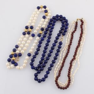 un filo di perle coltivate con sfere in lapislazzuli inframezzate da palline in oro satinato, un filo di sfere [..]