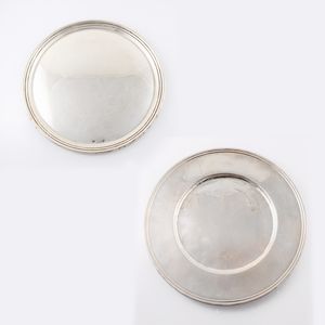 in argento 800 costituito da due vassoi tondi e un lavamani sorretto da tre piedini, gr. complessivi 1.299 ca. [..]