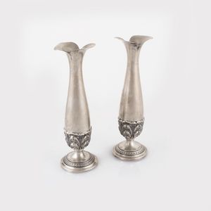 in argento 800 a corpo liscio con bocca a due lobi, decorati alla base da motivi vegetali stilizzati, piedi circolari [..]