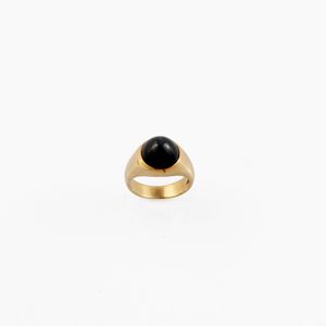 in oro giallo con zaffiro cabochon (abrasione), gr. 9,3. Misura 11