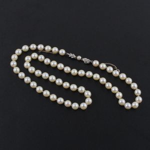un filo di perle coltivate 8 mm con chiusura in oro bianco. Lunghezza 60 cm