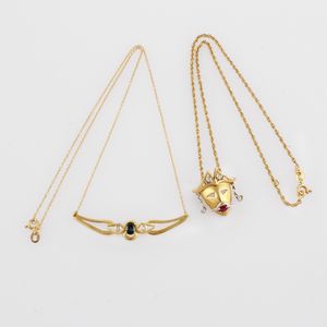 in oro giallo e bianco costituito da due catenine, rispettivamente una con motivo stilizzato centrale ornato [..]