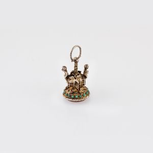 in corallo inciso raffigurante un personaggio orientale in posizione stante lavorato a tutto tondo con montatura [..]
