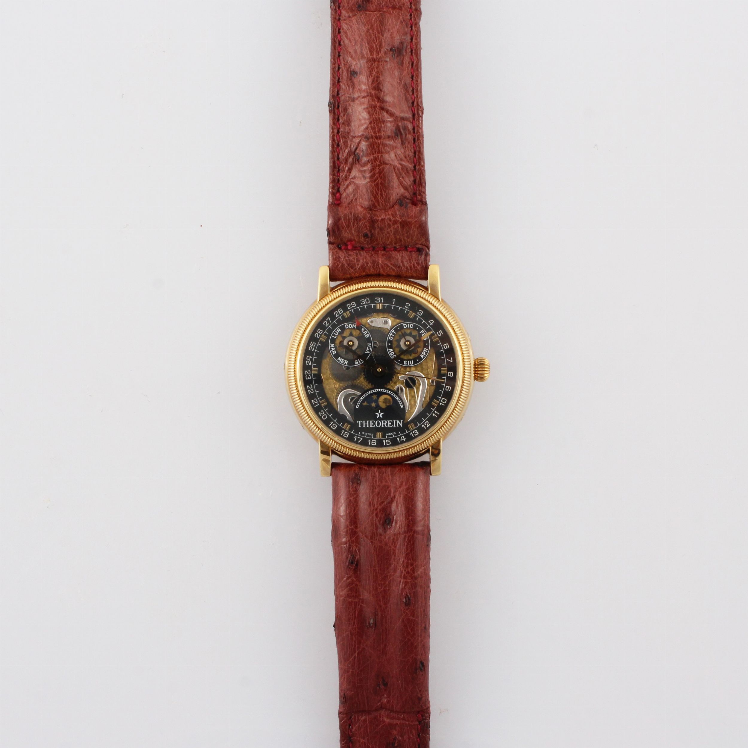 Orologio da polso, automatico, placcato, con triplo calendario, fasi lunari e fibbia originale