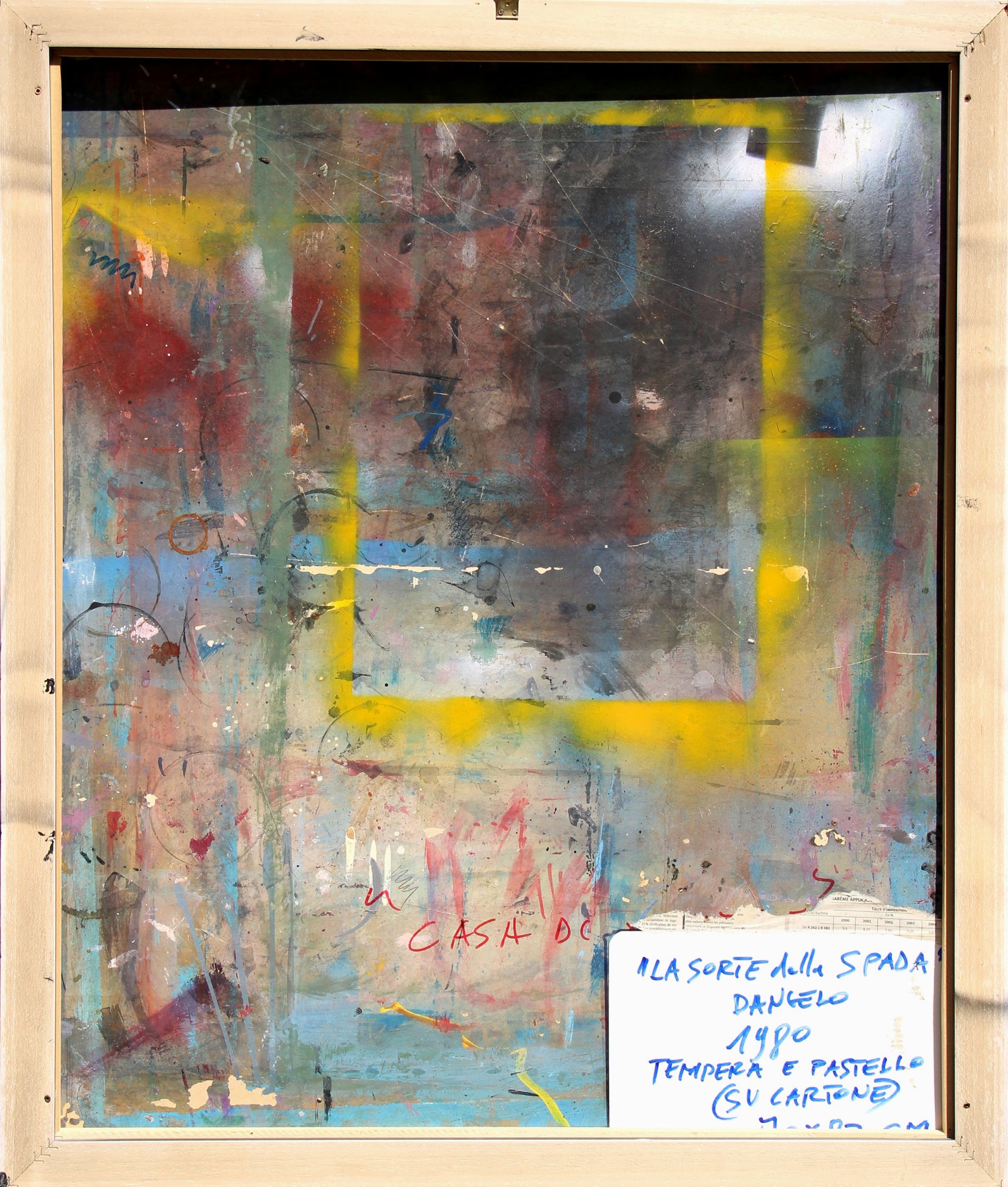 Titolo, firma, data, tecnica, misure La sorte della spada, Dangelo, 1980, tempera e pastello su cartone, 70x83 cm (al retro)