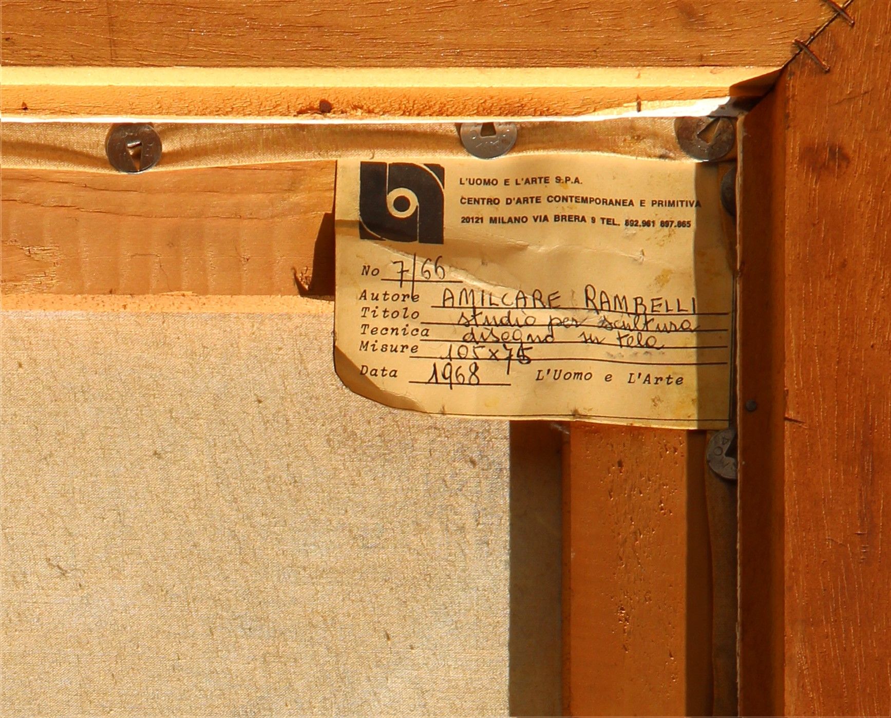 Etichetta di L'uomo e l'arte Centro d'Arte Contemporanea e Primitiva, Milano (al retro)