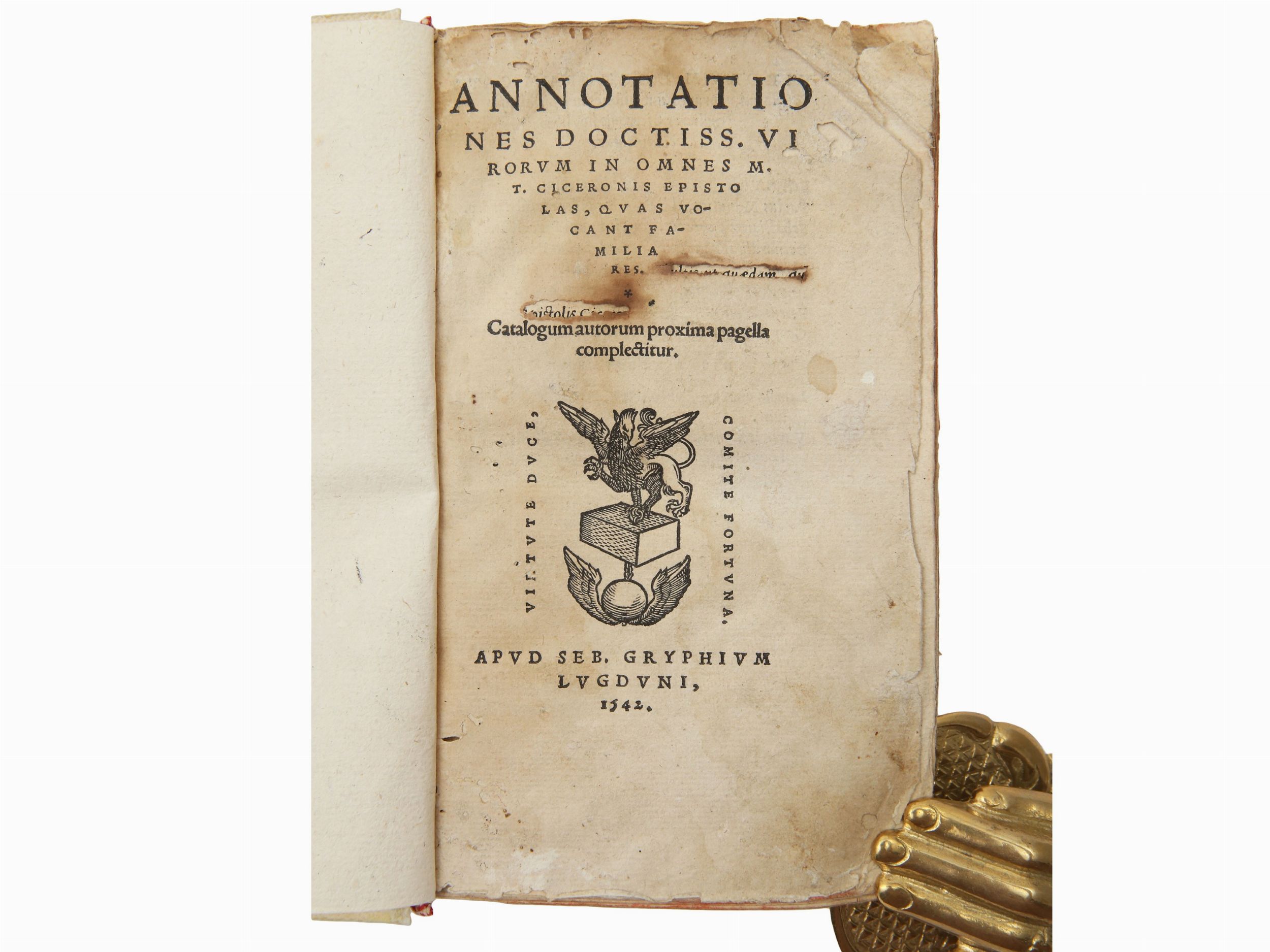 Lugduni: apud Seb. Gryphium, 1542, 1015, [1] p. In-8º (180x102 mm). Legatura non coeva in piena pelle con titolo calligrafico al dorso. Tagli rossi. Fregi e iniziali xilografiche. Strappi e mancanze al frontespizio, macchie e fioriture, ultima c. restaurata
