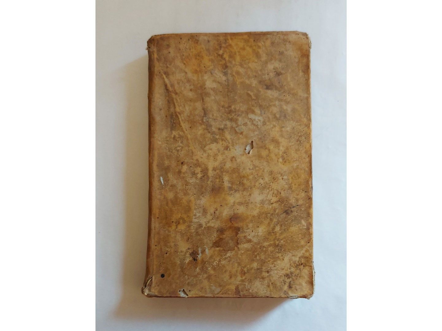 Napoli, A spese di Cristofaro Migliaccio, 1760. (190x120 mm) [8], 166 p. Legatura in piena pergamena, brunita, con titolo dorato al dorso, con mende. Cerniera staccata, frontespizio con galleria di tarlo e strappetto marginale, bruniture sparse. Frontespizio con marca tipografica in nero. Edizione terza