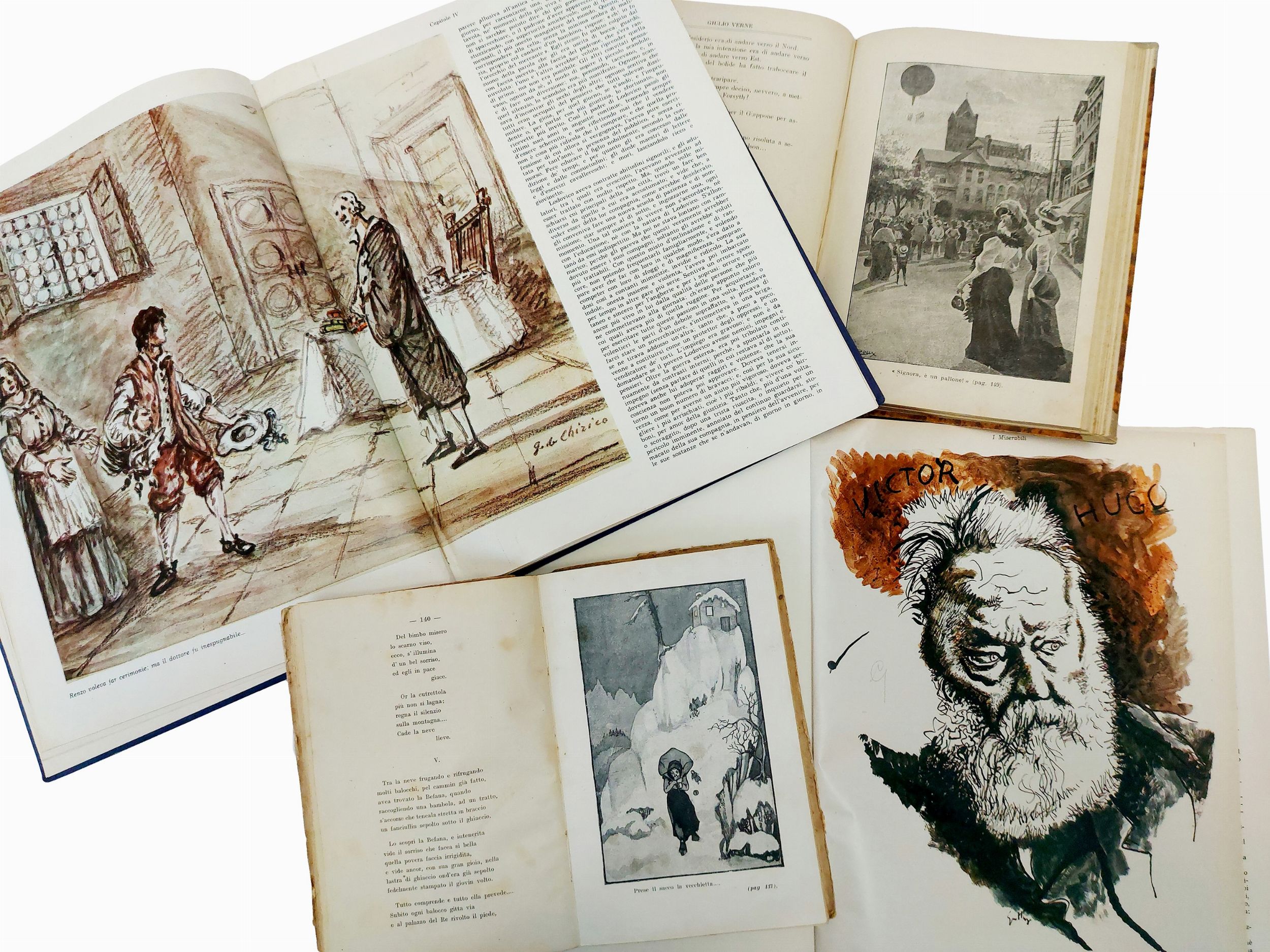 Alessandro Manzoni, I promessi sposi e Storia della Colonna infame illustrati da Giorgio De Chirico, a cura di M. Barbi e F. Ghisalberti, Milano: Aldo Palazzi Editore, 1964, 359 p. (330x25 mm). Legatura telata editoriale leggermente scolorita.