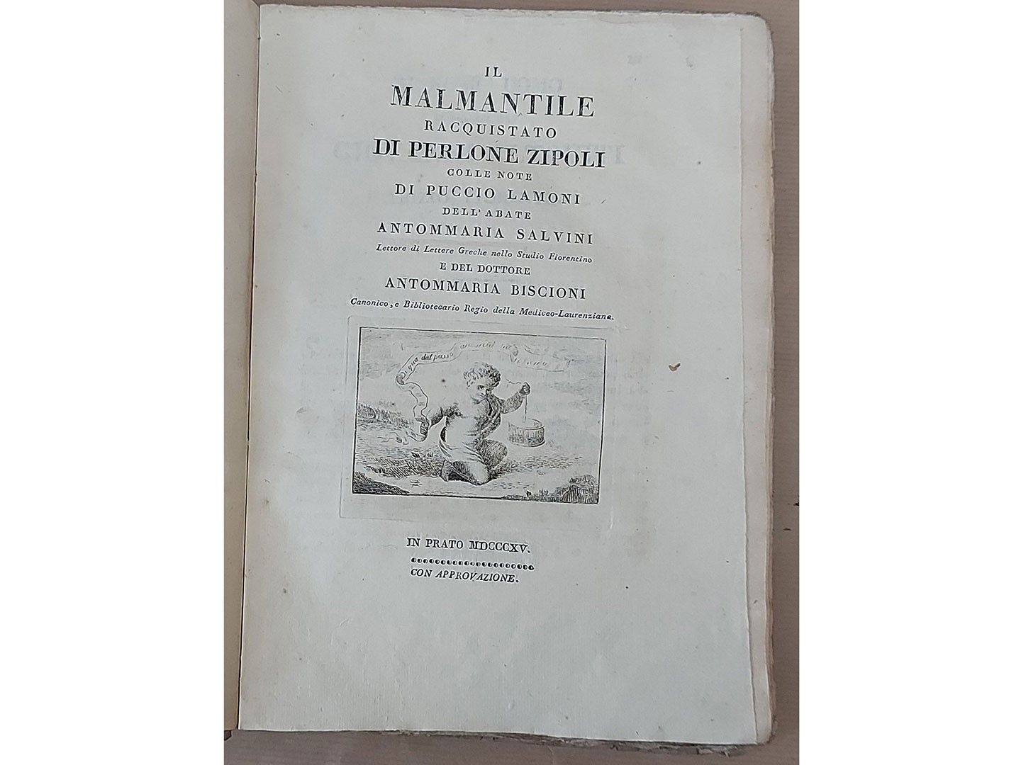 Prato, 1815 colle note di Puccio Lamoni e d'altri. Edizione conforme alla Fiorentina del 1750, In Prato, nella Stamperia di Luigi Vannini, 1815, 4 tomi in 2 vol. (255x190 mm). Pagine: [2], 1 tav., [2], XXXVIII, 235, 232, 259, 249. Tav. all'antiporta del I tomo e un secondo frontespizio con vignetta aggiunto tra il frontespizio e la c. A2. Testo su due colonne. Legatura editoriale coeva, titolo calligrafico al dorso, evidenti mende ai dorsi e gore ai piatti. Bruniture diffuse e fioriture sparse (2)