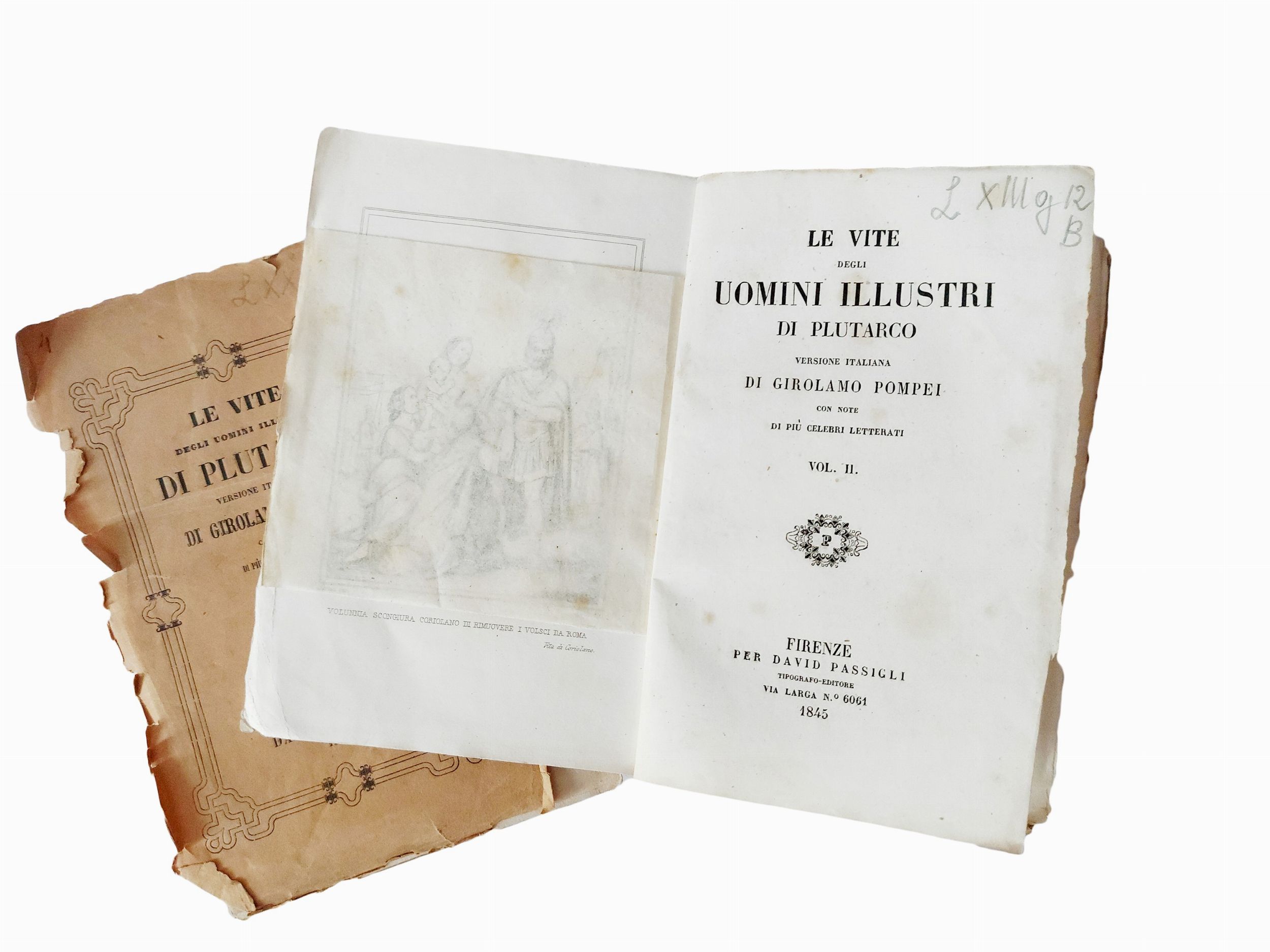 versione italiana di Girolamo Pompei con note di più celebri letterati, Firenze: per David Passigli, 1845, voll. 1 e 2 (mancanti i voll. 3 e 4). 466 p., 1 tav. - 544 p., 1 tav. Legature cartonate editoriali con evidenti difetti (staccati i piatti del primo volume, mancanti quelli del volume 2, parzialmente slegati). Fioriture.