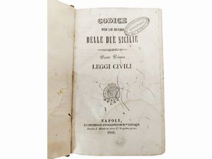 Napoli: Stabilimento Tipografico di D.co Capasso, 1848. (165x105 mm). Parte prima. Leggi Civili; XII, 288. p. [..]