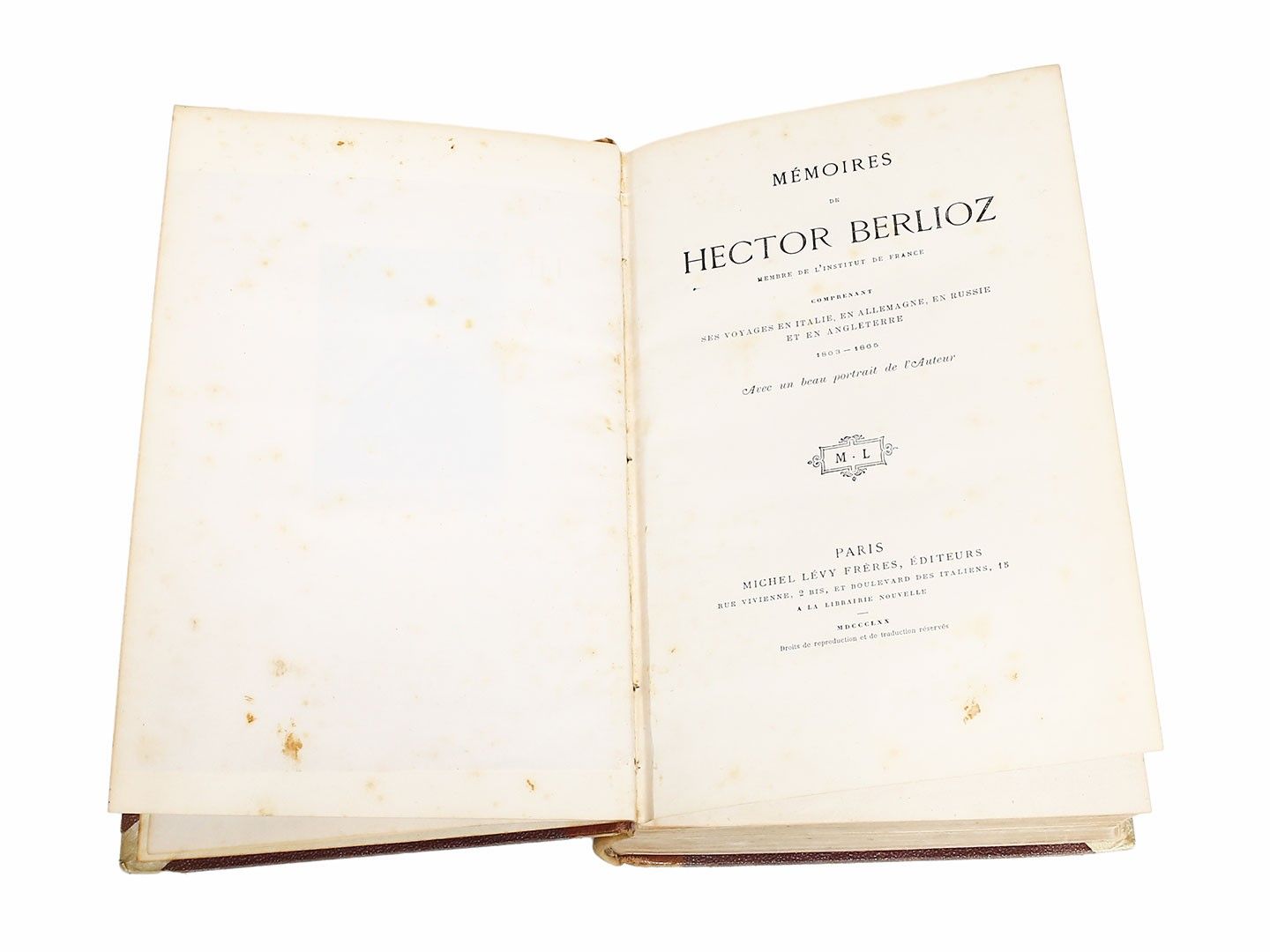 Prima edizione, completa del bel ritratto fotografico del compositore all'antiporta e del foglio di errata in fine volume. Mancante il facsimile litografico dell'ultima pagina del manoscritto (Parigi 3 novembre 1865)