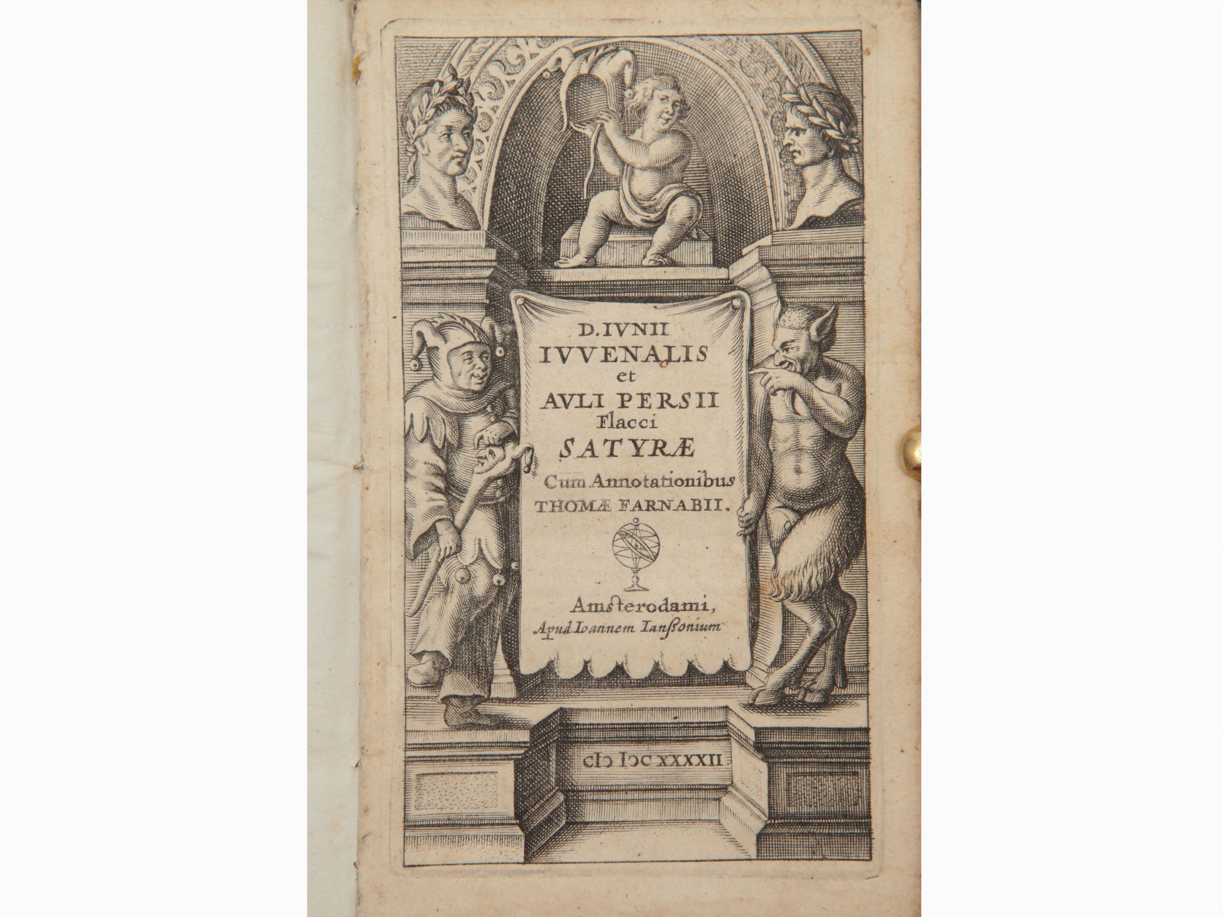 - D. Iunii Iuvenalis et Auli Persii Flacci Satyrae cum annotationibus Thomae Farnabii, Amsterodami: Apud Ioannem Ianssonium, 1642. In-12° (130x80 mm). 189, [3] p. Bel frontespizio calcografico. Le Satire di Persio iniziano a p. 151 con proprio frontespizio: Auli Persi Flacci Satirae sex.