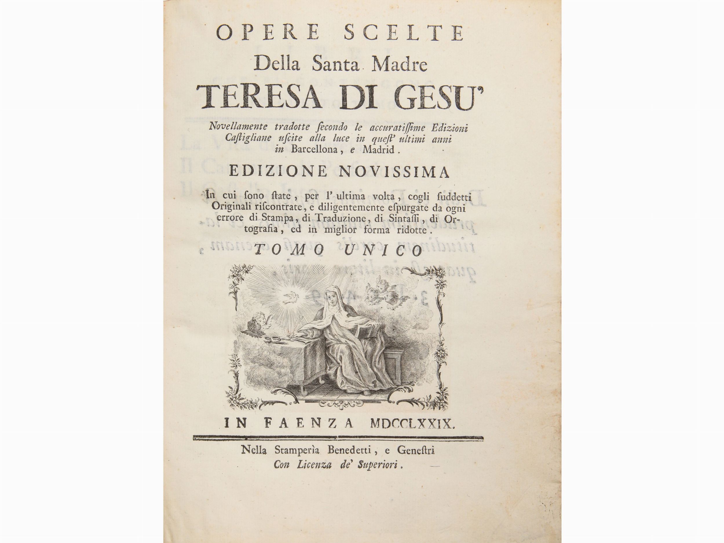 In Faenza: Nella stamperia Benedetti, e Genestri, 1779. In-4° (250x195 mm). VIII, 548, [2] p.