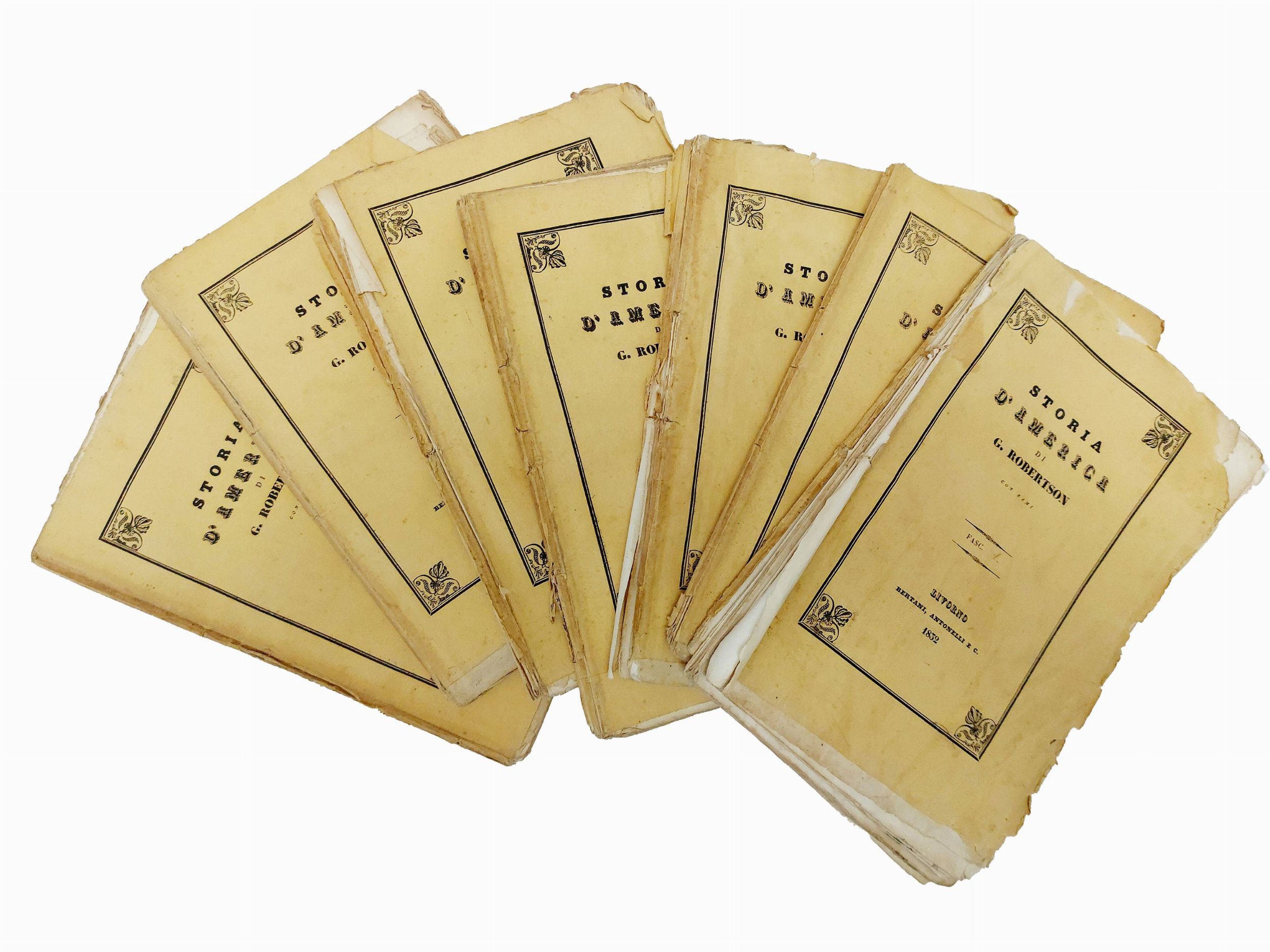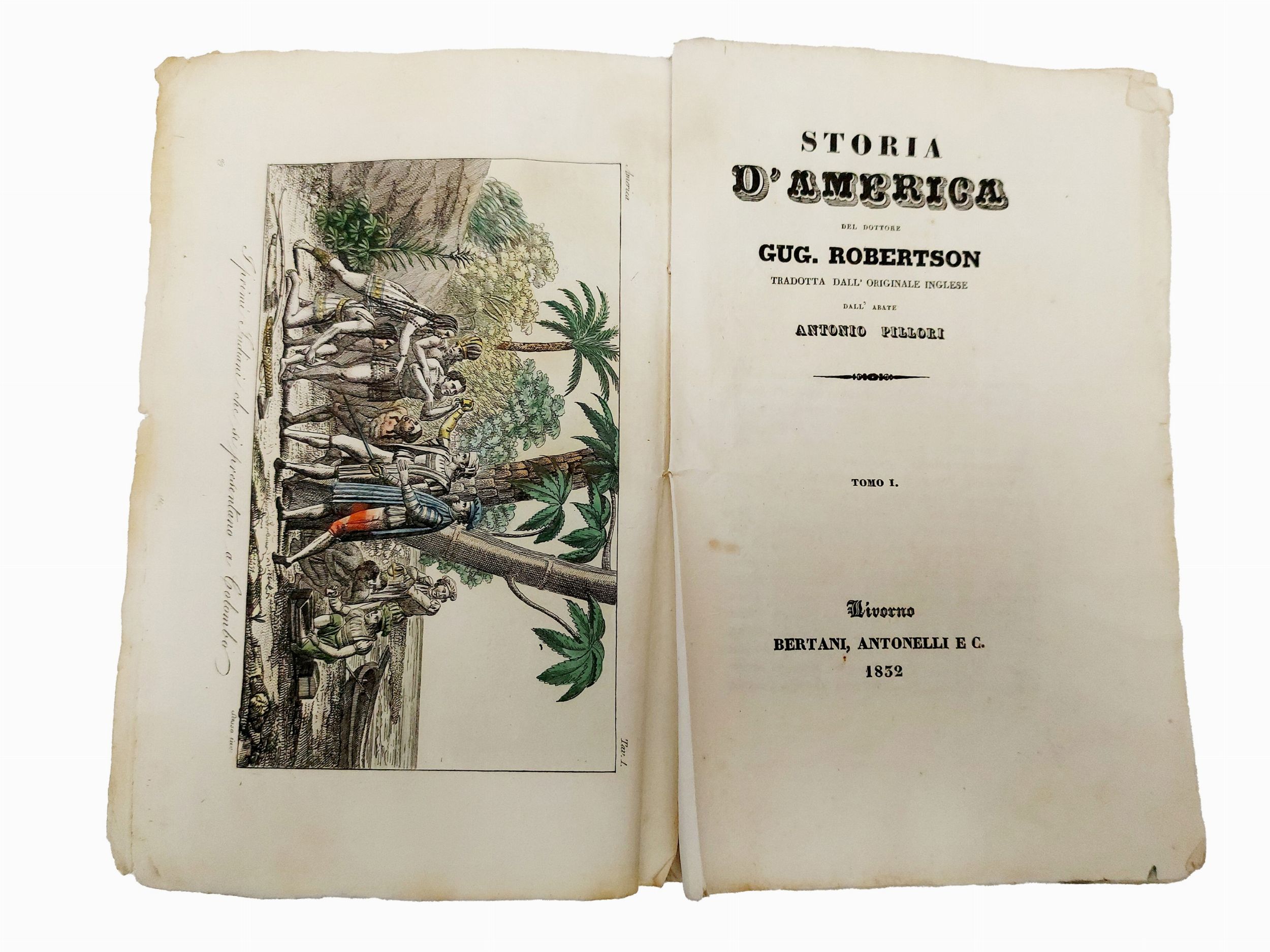 - Storia d'America del dottore Gug. Robertson, tradotta dall'originale inglese dall'abate Antonio Pillori, Livorno: Bertani, Antonelli e C. 1832, fasc. 1, 3, 4, 6, 7, 8, 9. Incompleta, con belle tav. colorate alle antiporta. Evidenti difetti (strappi, macchie, mende, fioriture) (10)