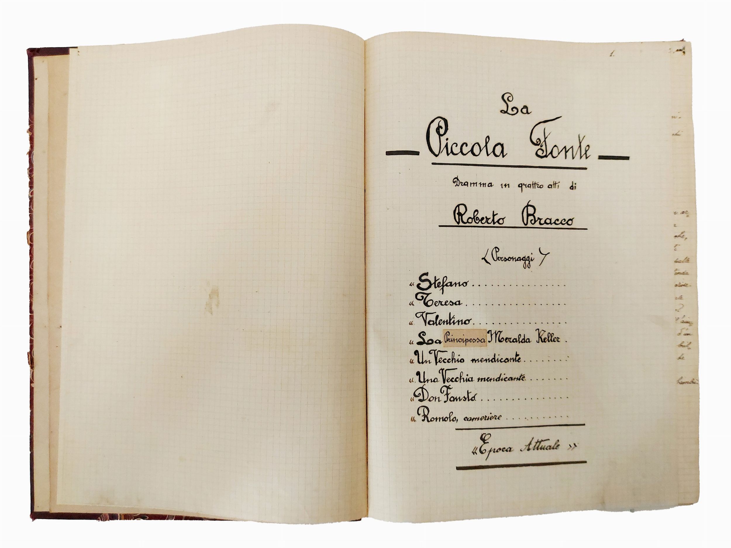 Trascrizione manoscritta del dramma La Piccola Fonte di Roberto Bracco