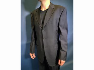 TG 42 Anni Novanta giacca con revers a lancia, bottone madreperla e pantalone a sigaretta