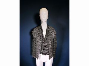 TG 42/44 Estate 1982 di una giacchina in seta con taschino, motivo a zig zag nero e bianco, abbinato ad un gilet [..]