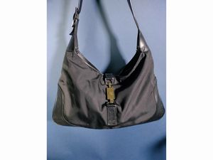 TG L 35 cm H 32 circa nero con due tasche in rete intrecciata all'esterno, scomparto con zip centrale, dust ba [..]