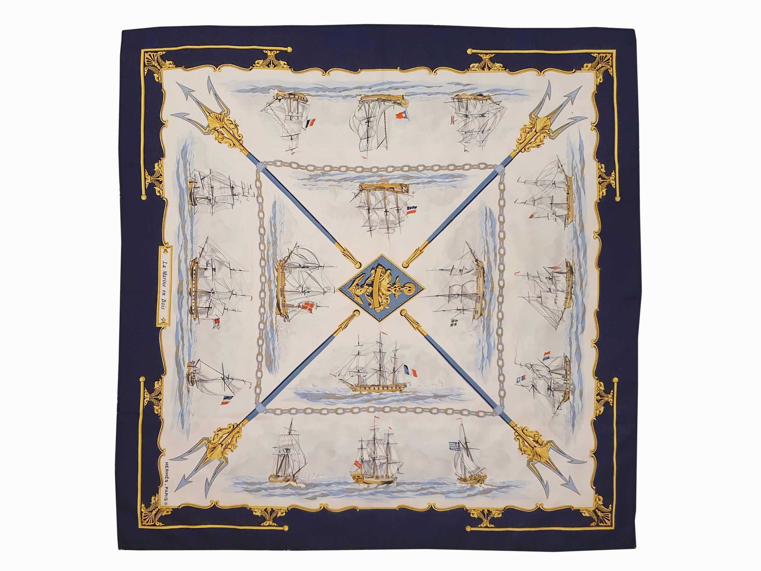 è una rappresentazione di barche in legno con bandiere dei Paesi europei, separate da quattro tridenti di Poseidone, cornice blu notte