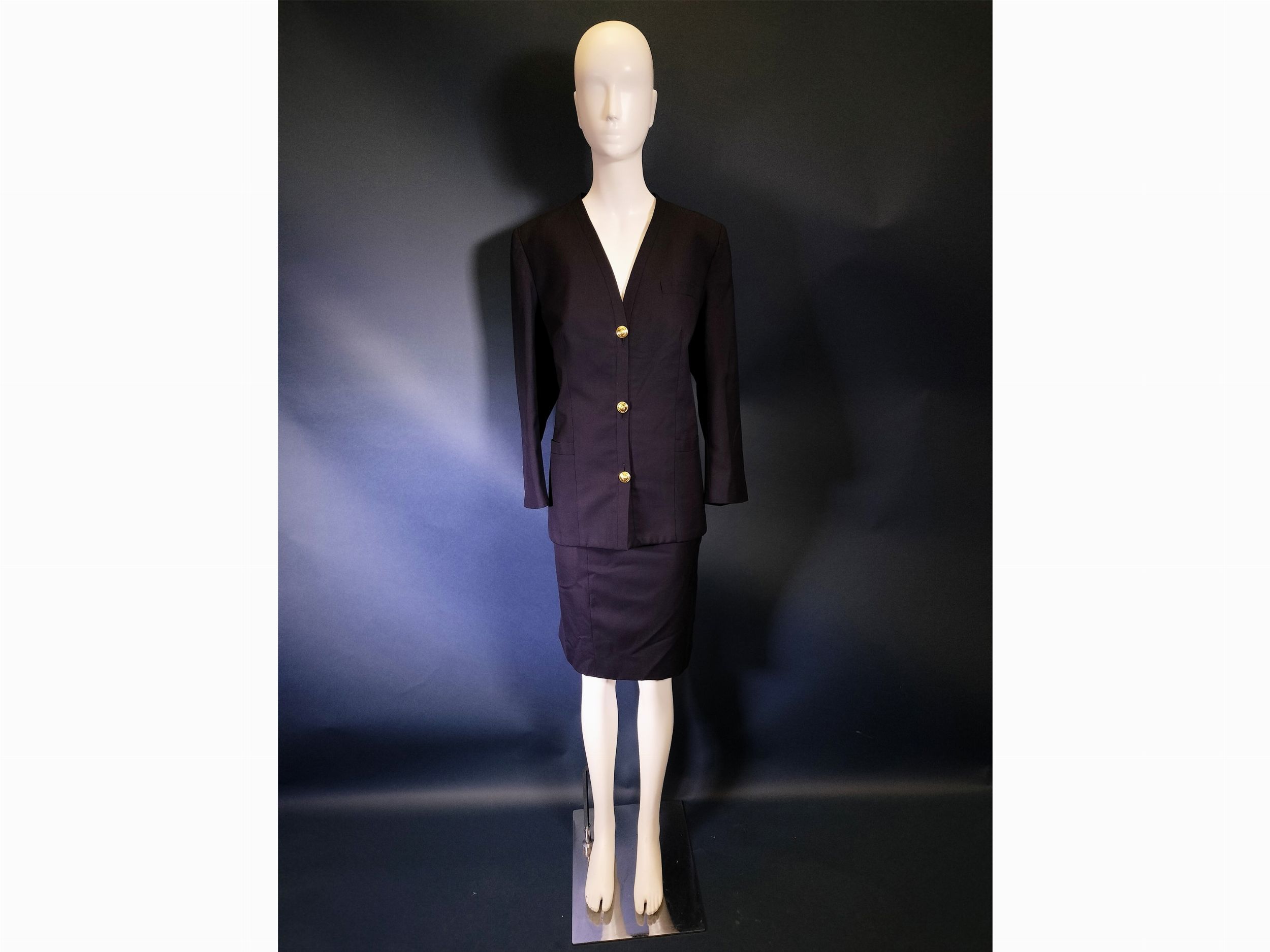 un completo e una gonna Roccobarocco il primo in tessuto blu con bottoni dorati e la seconda a pois rossi con applicazioni di Swarovski infine un completo in cotone rosso Livio de Simone