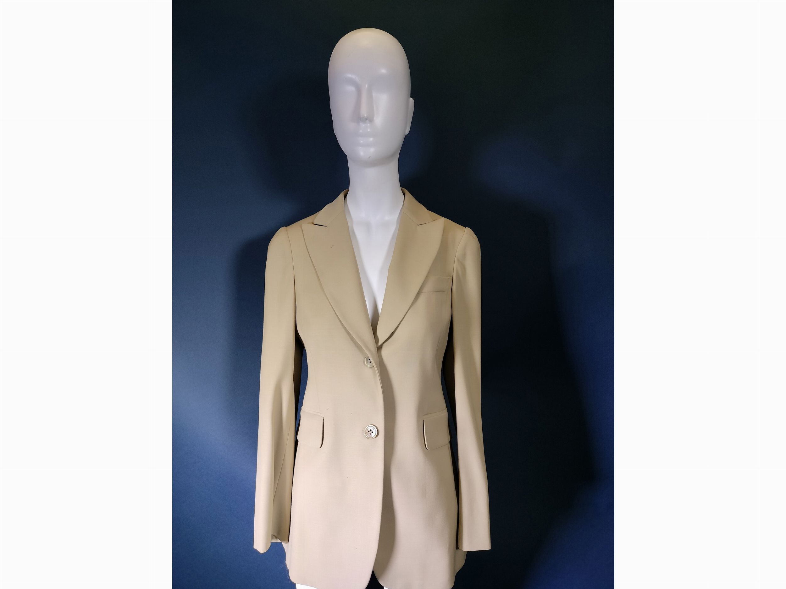 Anni Novanta giacca con revers a lancia, bottone madreperla e pantalone a sigaretta