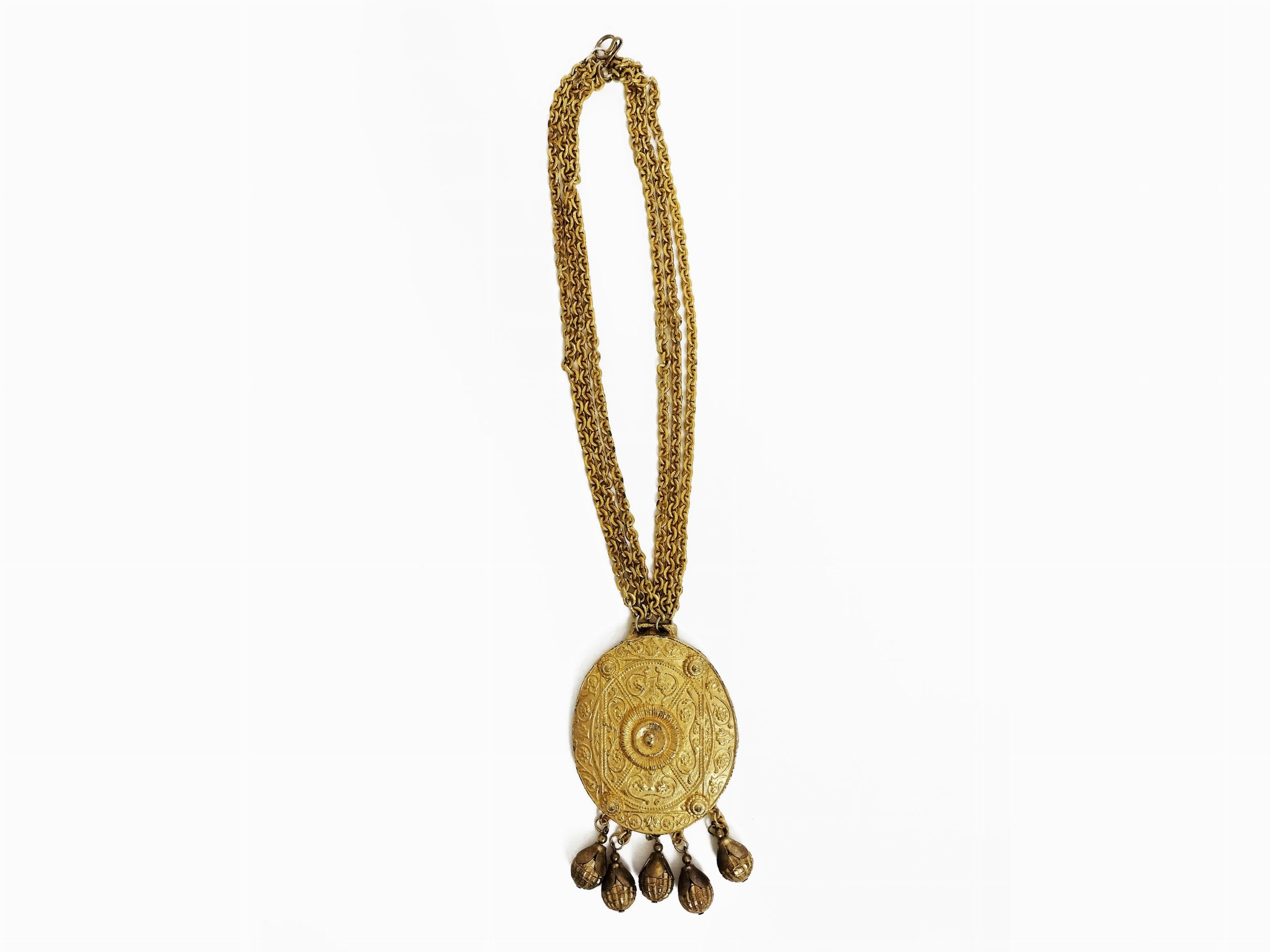 formata da tre catene e medaglione centrale ovale, cinque bacche pendenti