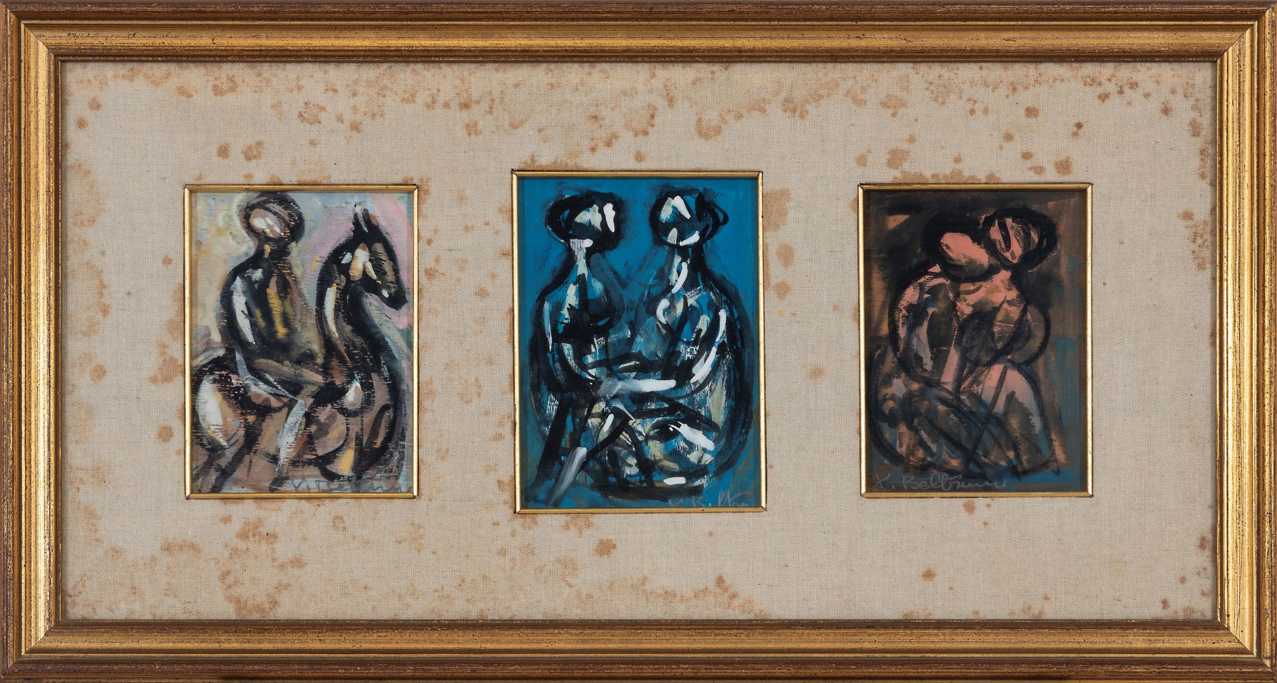 trittico - 3 olii su tavola entro unica cornice, 15x12 (2) - 16x13,5