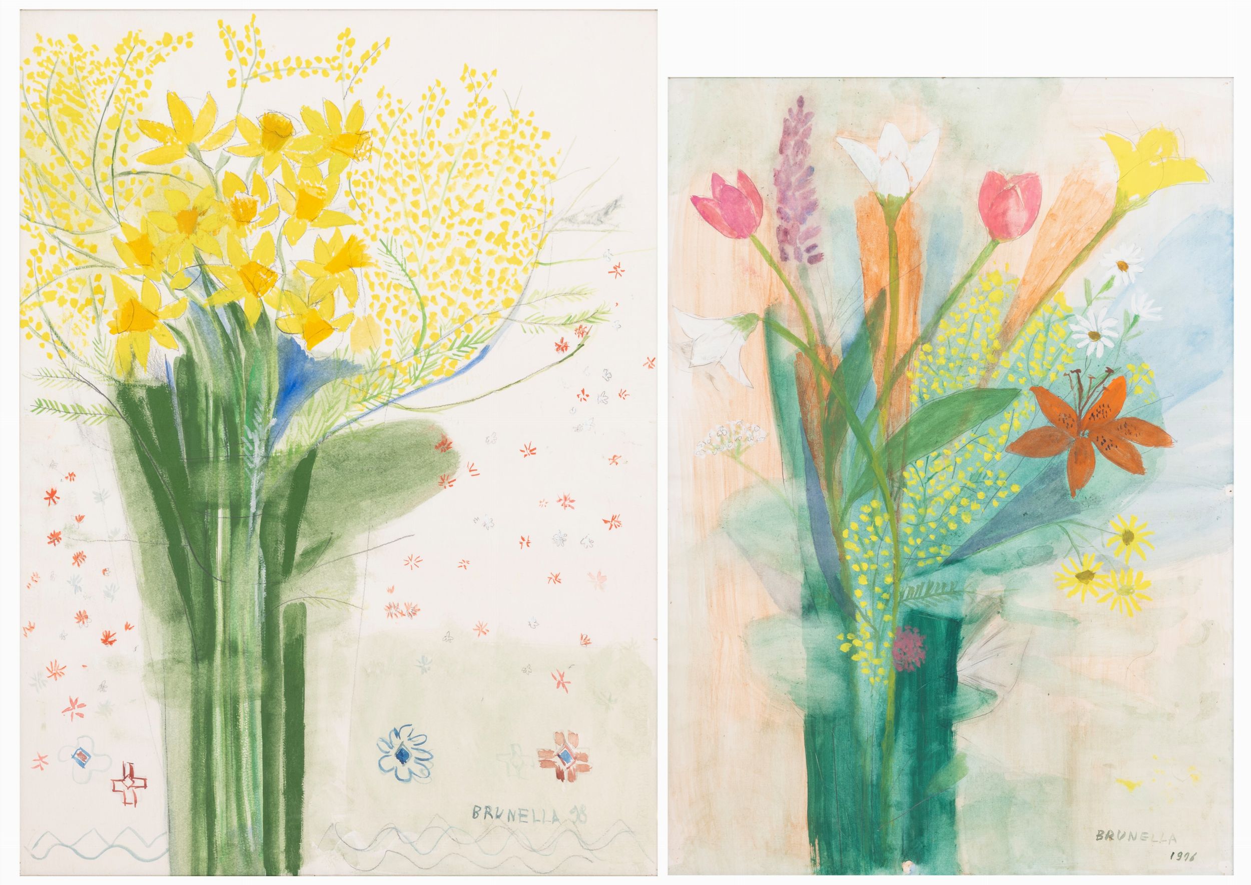 lotto di 2 tecniche miste su cartoncino, cm. 75x55 e 70x50