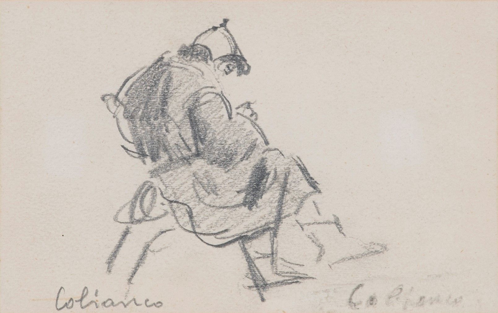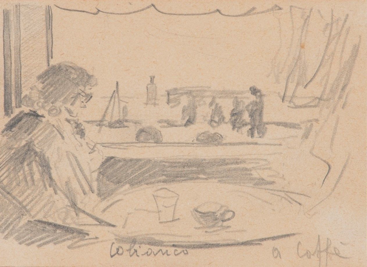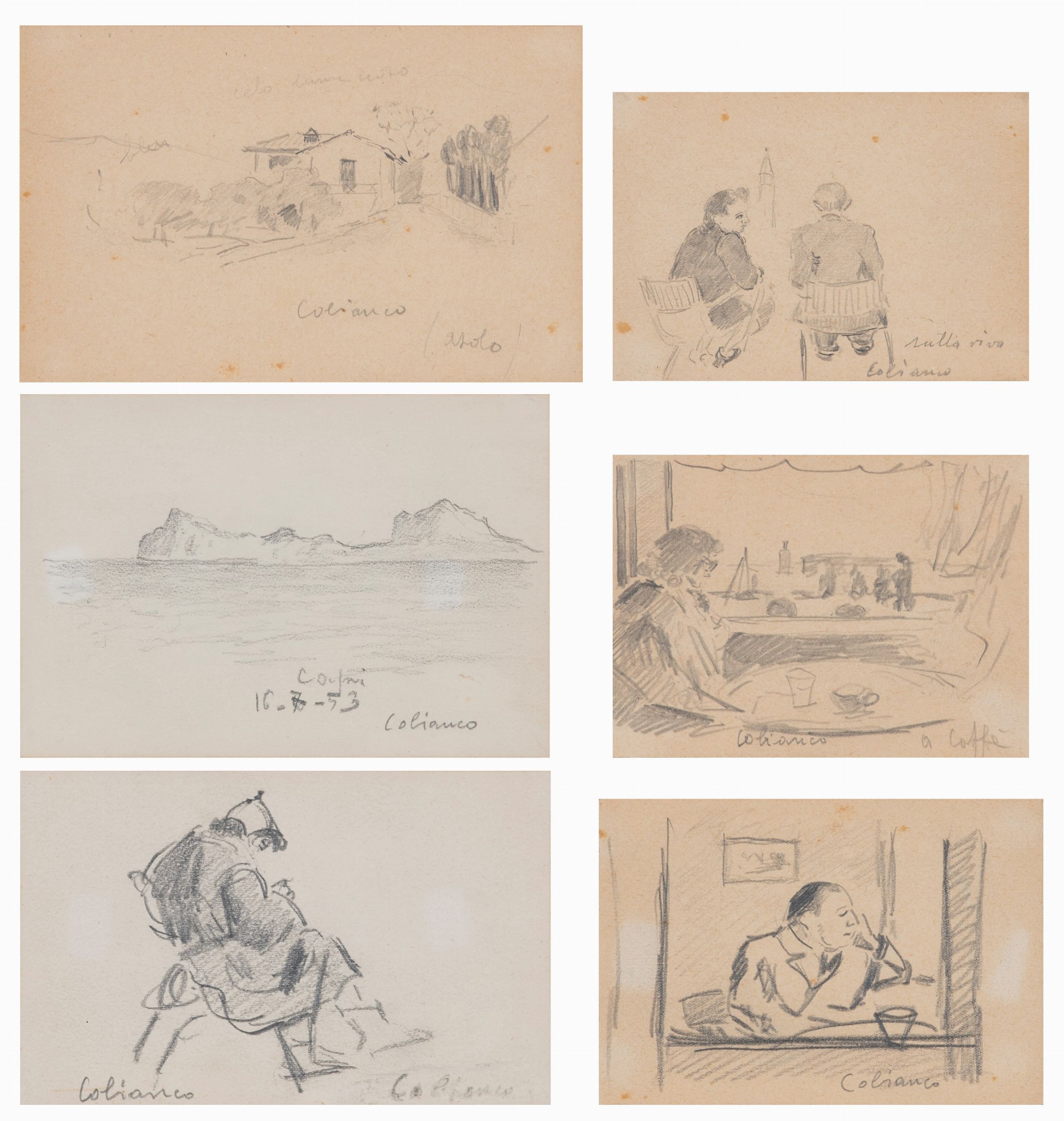 lotto di 6 disegni a matita su carta, cm. 10,5x16- 8,5x12,3- 8,5x12- 10,5x15- 9x12,5- 9,5x15
