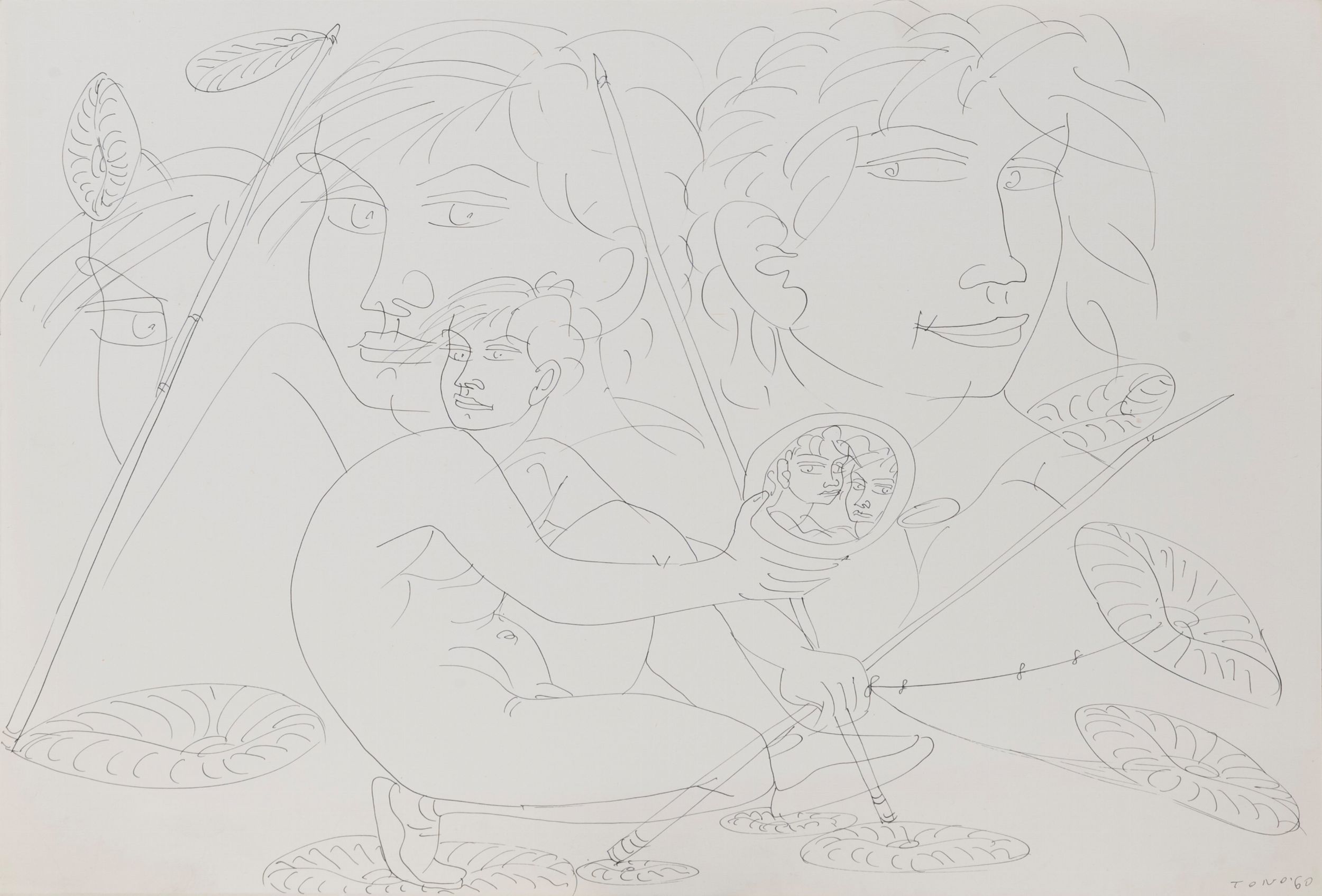 lotto di 4 disegni a china su carta, cm. 43x35 - 34,5x44 - 40x34,5 - 40x35