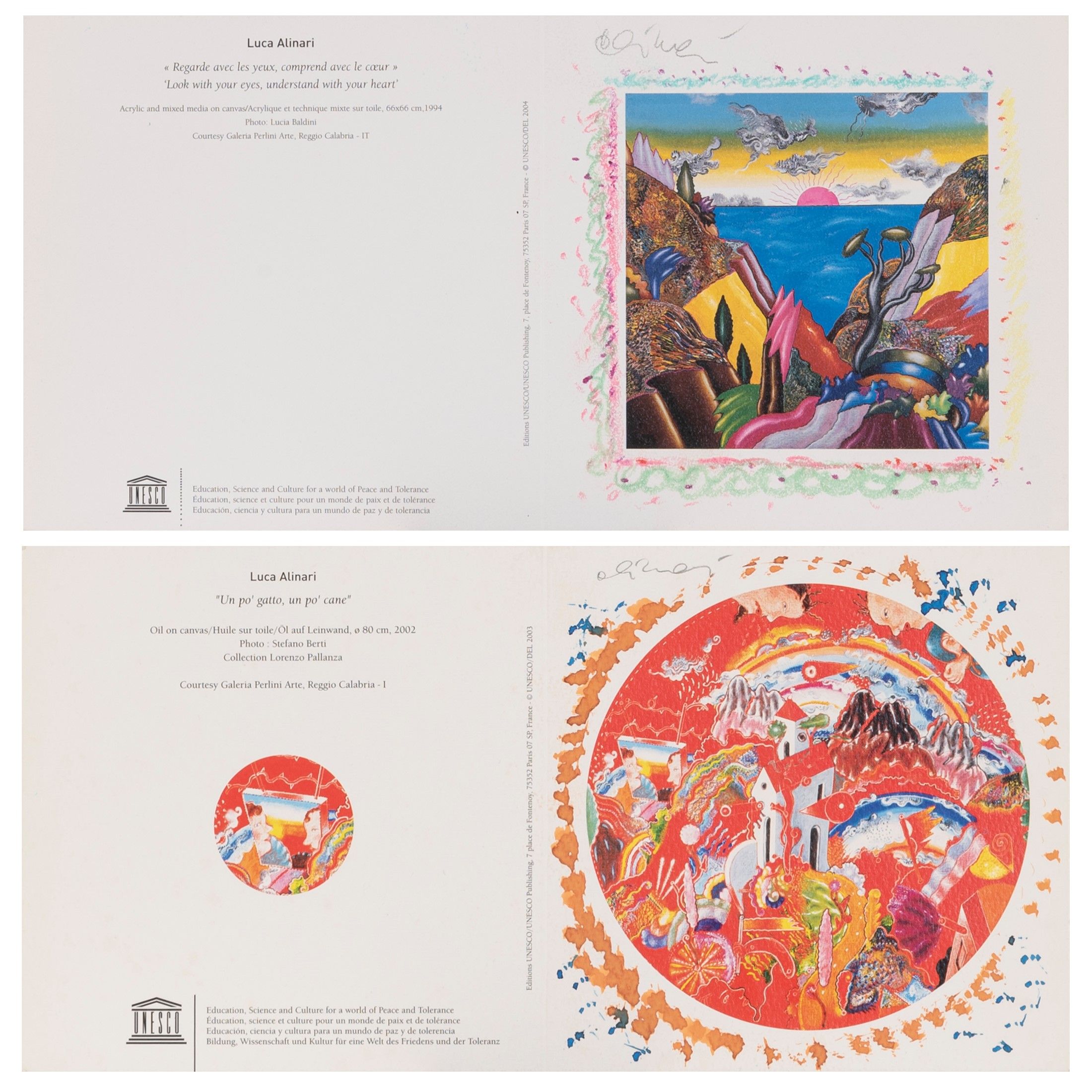 cartoncino di invito ritoccato a mano dall'Autore, cm. 30x19 cad.