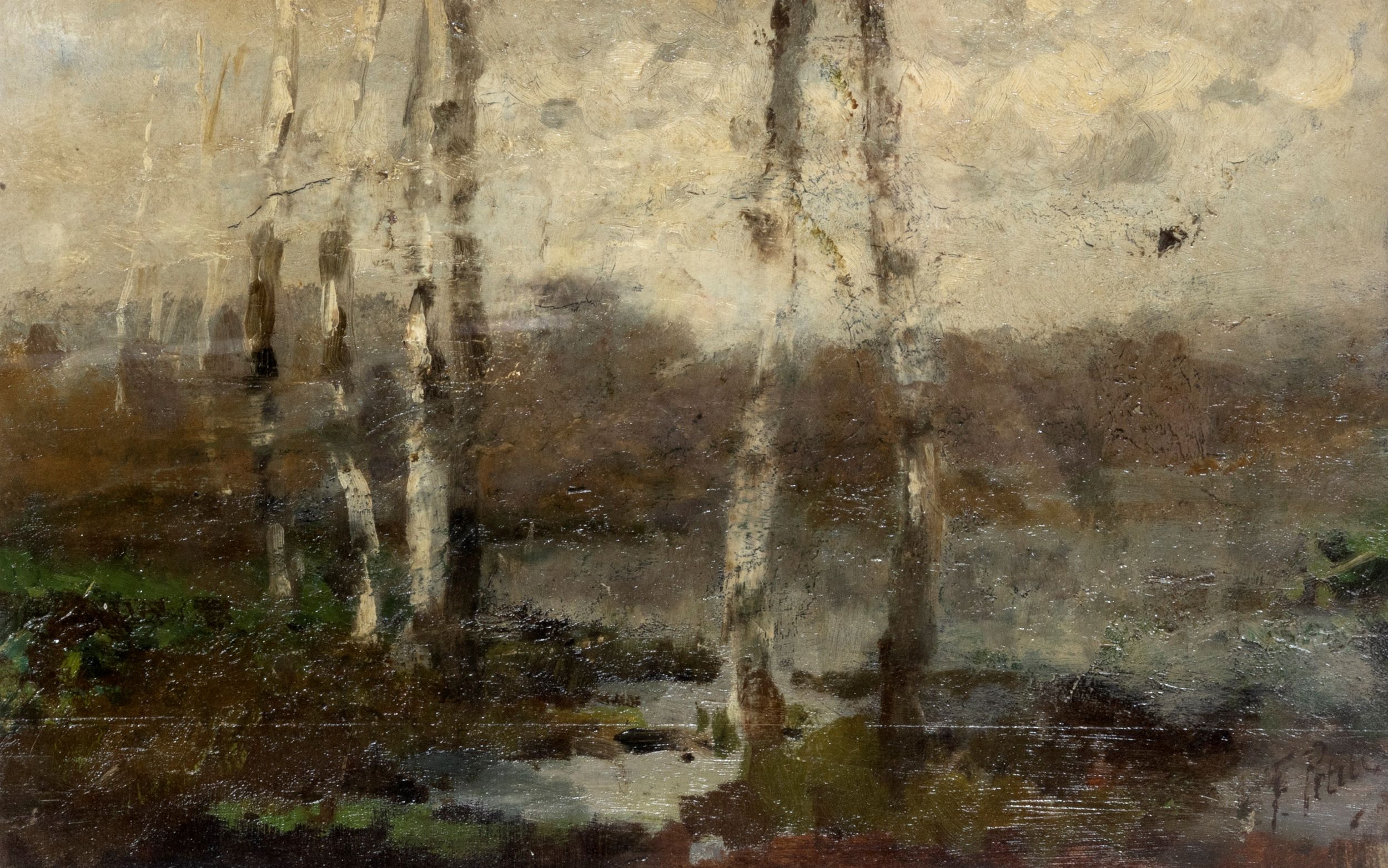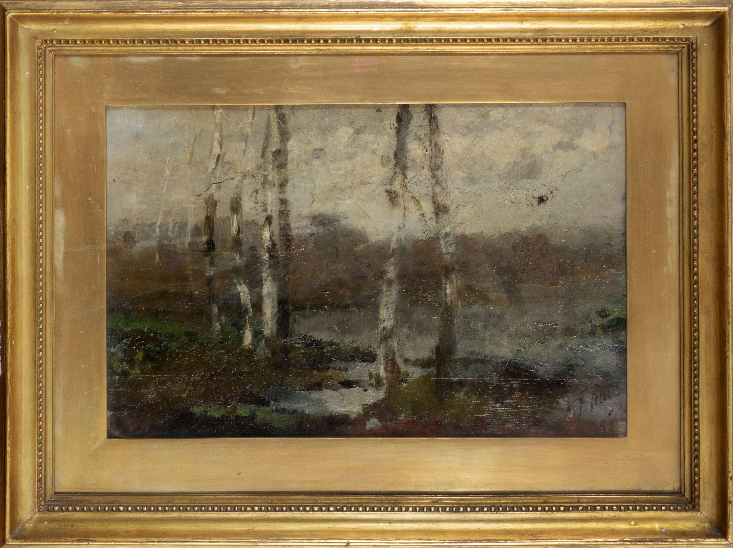 Sul retro, altro dipinto di mano dell'artista con paesaggio marino e nave.
