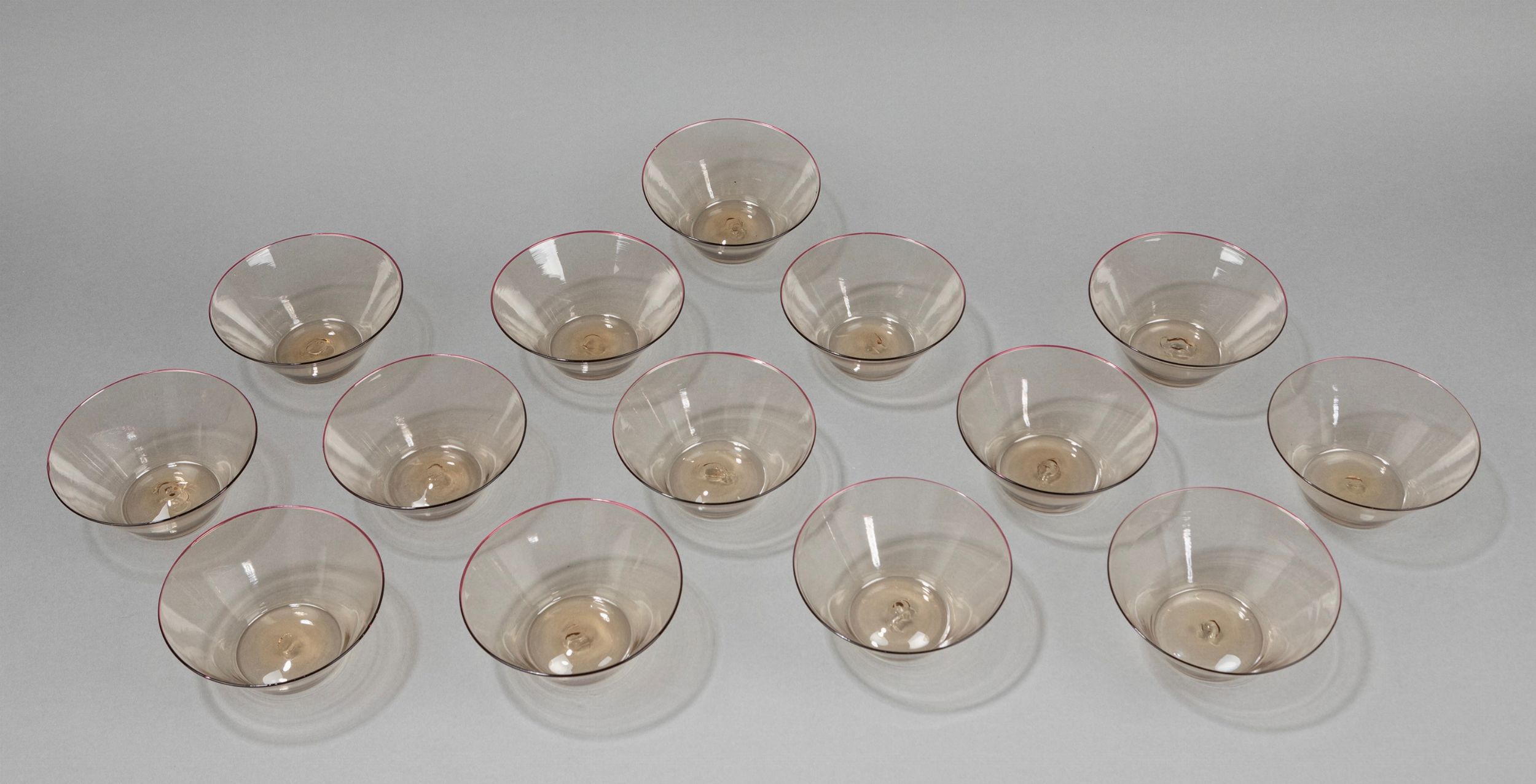 1920 composto da 12 coppe in vetro soffiato con bordo ametista.