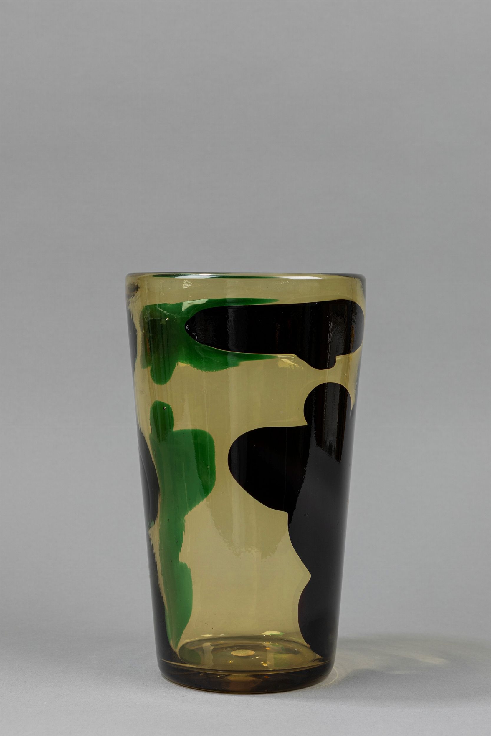 1950 ca. Della serie a Macchie con decoro astratto verde e nero.Produzione Venini. Etichetta originale sotto la base. Firma ad acido Venini Murano Italia.