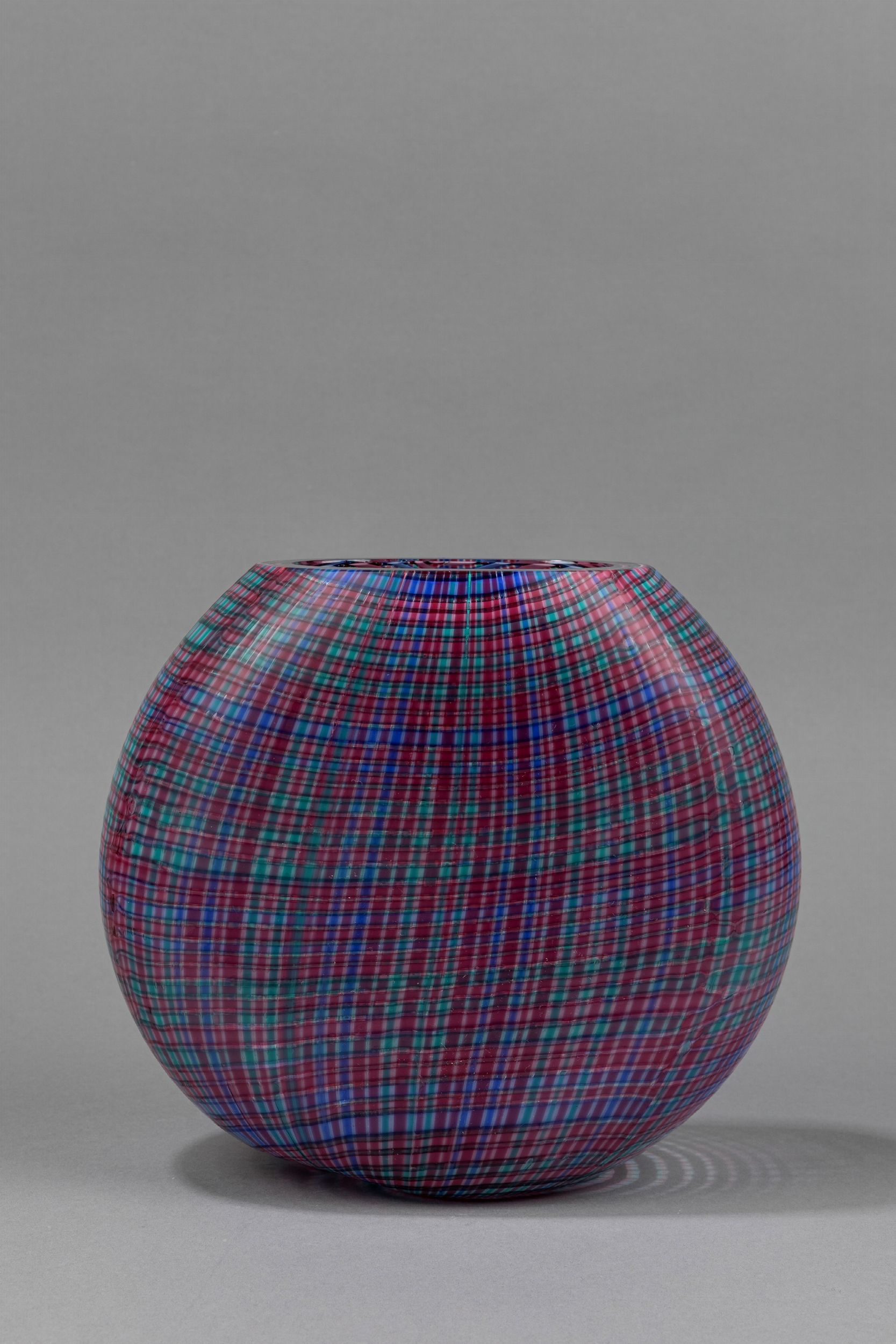 1985 a sezione ovale della serie Scozzesi in vetro soffiato con decoro di canne multicolori.