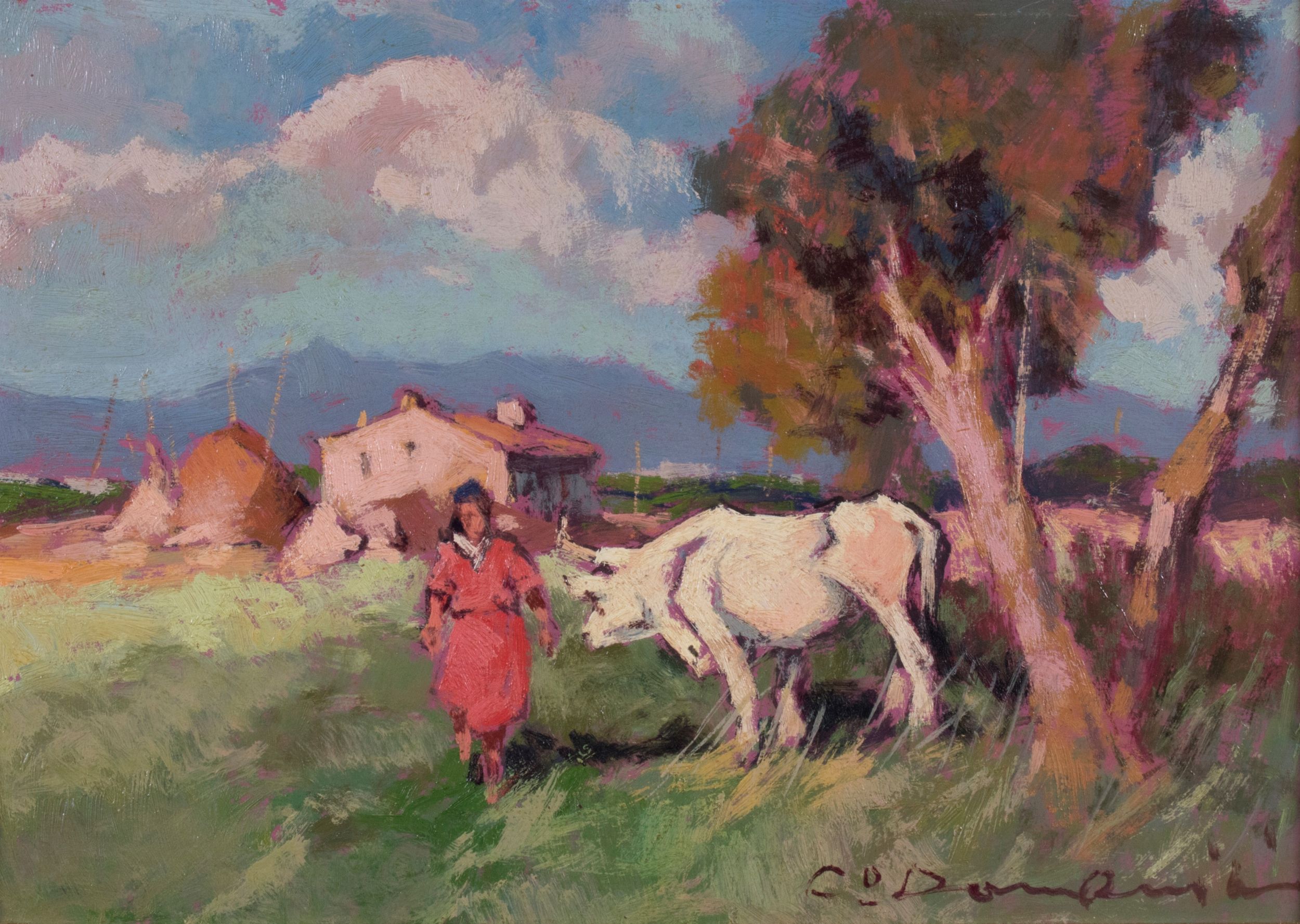 Firma in basso a destra: C. Domenici; titolo e firma al verso: Mucca al / pascolo / Carlo Domenici.