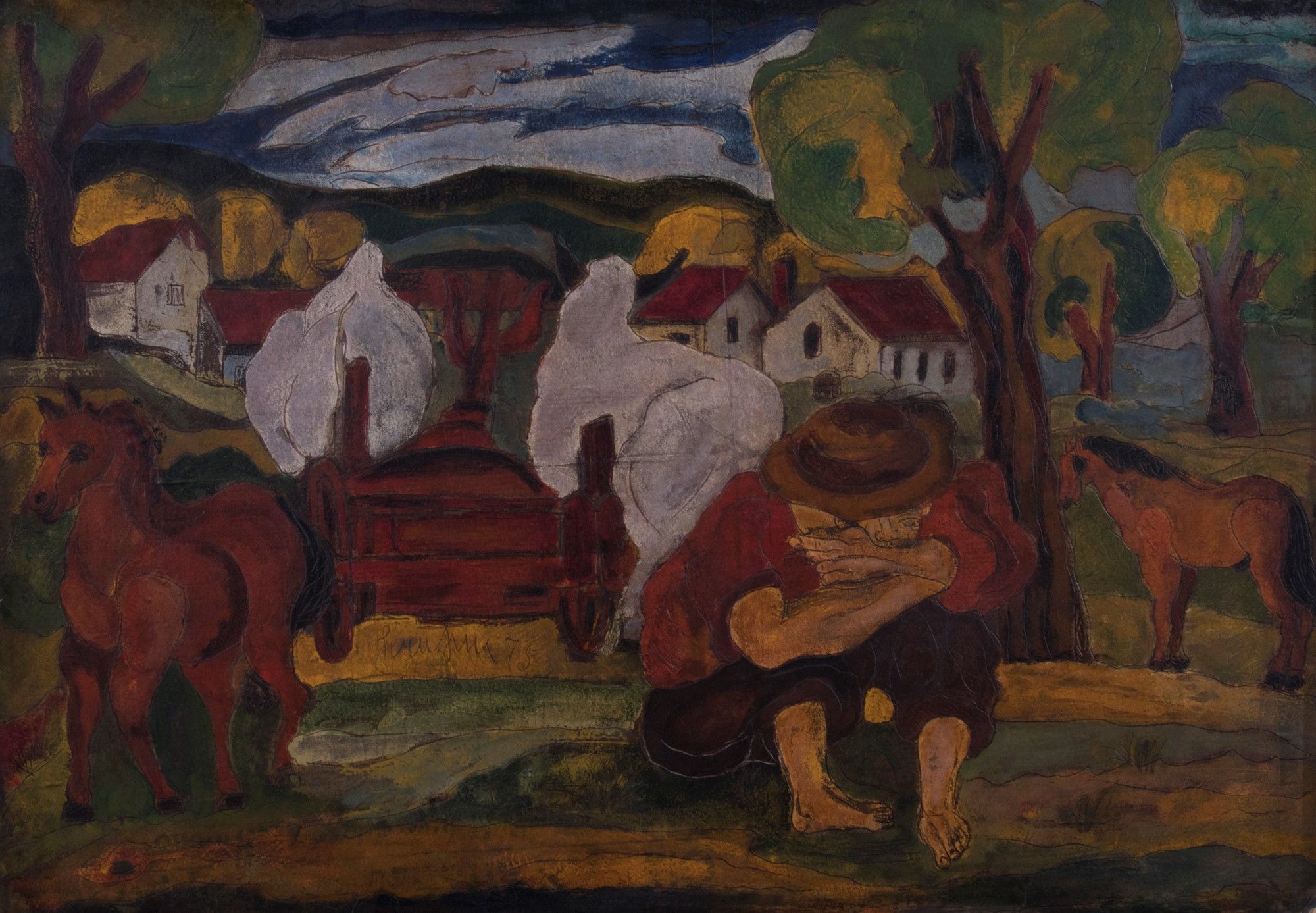Giuseppe Serafini : Paesaggio con contadino  - Asta PARADE III - ARTE MODERNA, CONTEMPORANEA E GRAFICA - Associazione Nazionale - Case d'Asta italiane