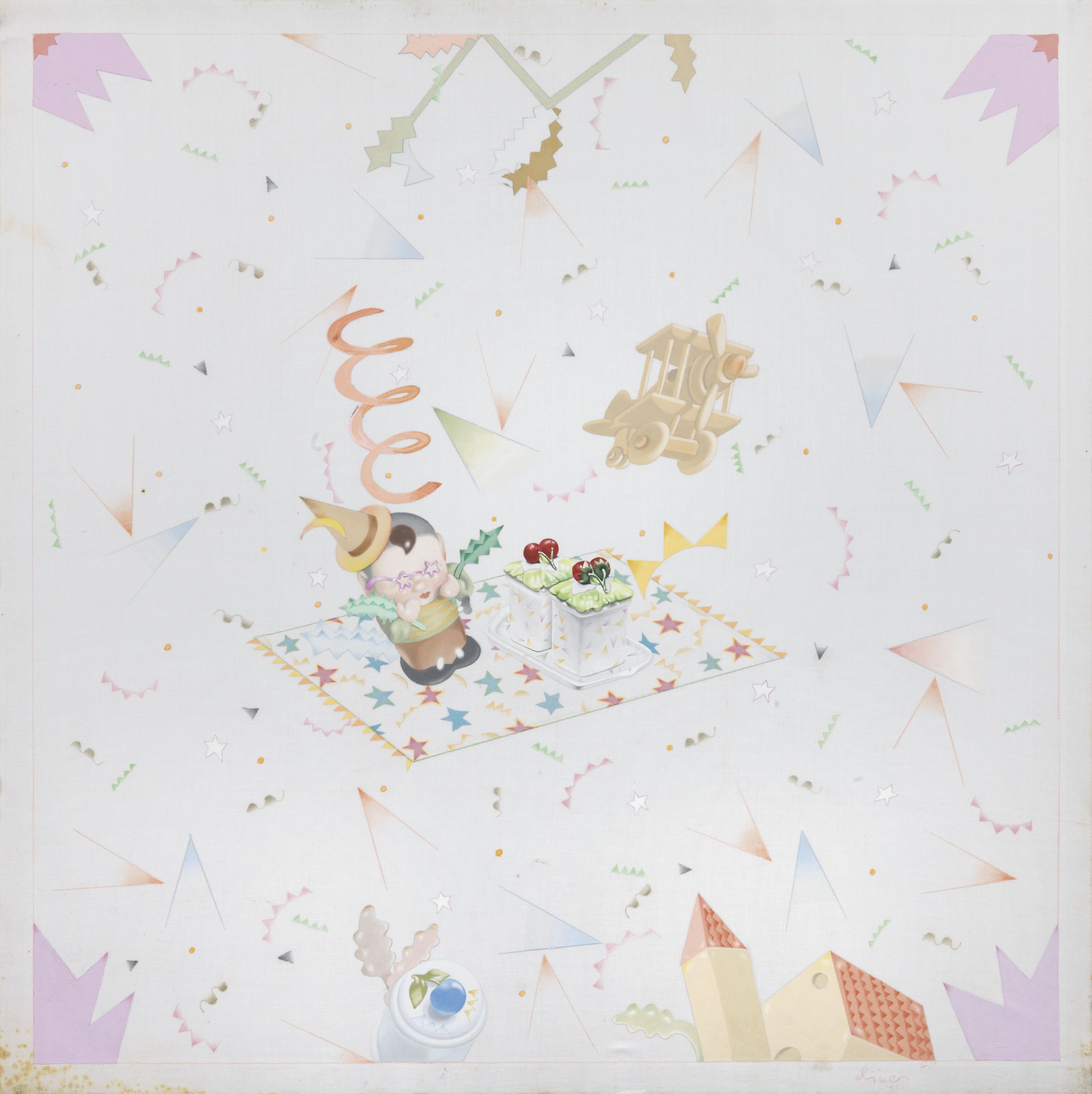 Tecnica mista su stoffa applicata su tela, cm. 80x80