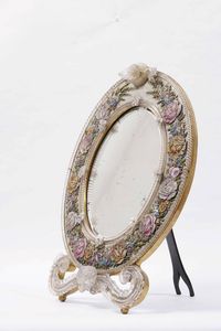 Specchierina ovale con cornice in micro mosaico floreale. XX secolo