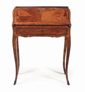 Piccolo bureau Luigi XV lastronato in bois de rose. Francia o Piemonte, XVIII se [..]