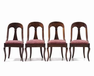 Quattro sedie Carlo X a gondola in radica di noce. XIX secolo