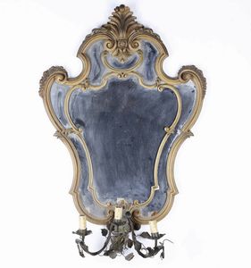 Coppia di appliques in legno intagliato e dorato. XIX secolo