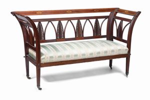 Largh. 190 - Prof. 60 - Alt. 110 Cm motivo a doppio fiore intagliato al centro dello schienale, sedile e schienale [..]