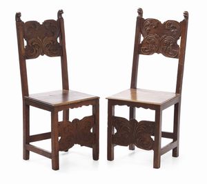 Due poltroncine e due sedie in noce intagliato. XIX secolo