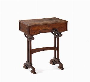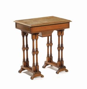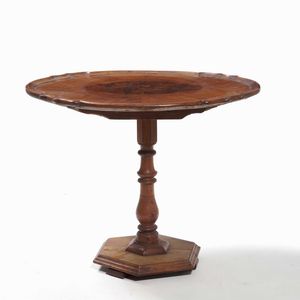 Tavolino con piano sagomato e lastronato. XIX secolo