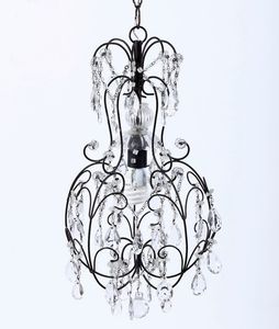 Lampadario in metallo a otto luci e altro lampadario con gocce. XX secolo