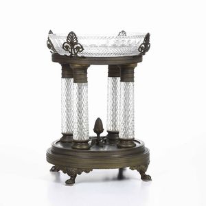 Centrotavola in cristallo e metallo dorato. XIX-XX secolo