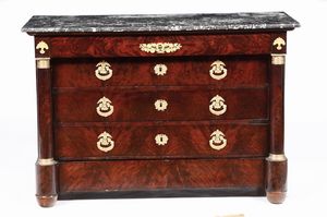 Cassettone Impero impiallacciato in legno di mogano, XIX secolo